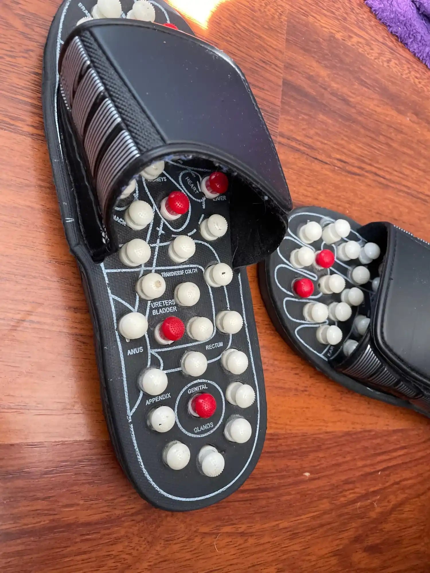 Ulubione kapcie ever! Na początku je niedoceniłem, ale naprawdę działają. Moje napięcie stóp? ZNIKNĘŁO.