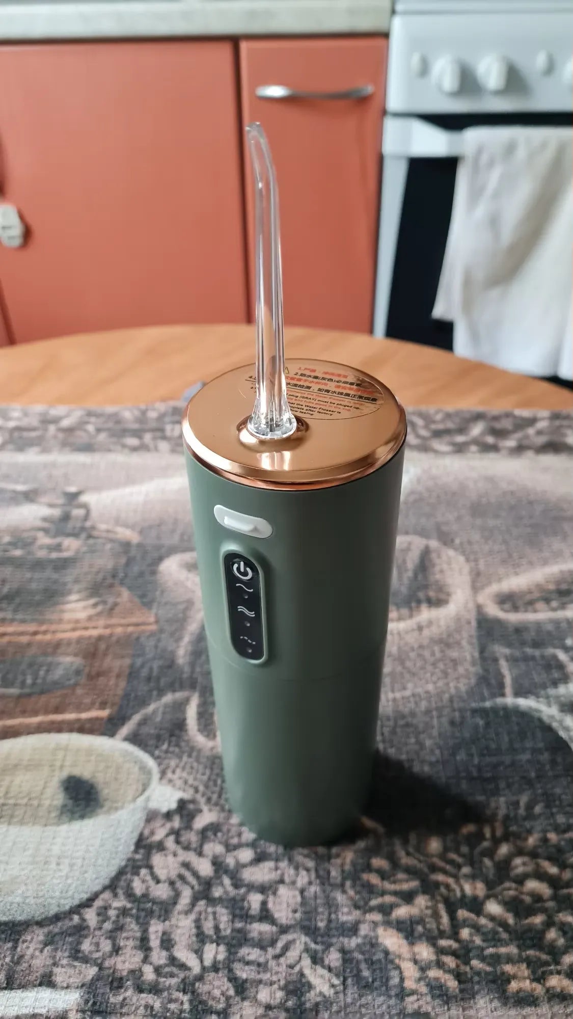 "WOW! Ten irygator wodny zmienił moją rutynę dentystyczną! Super łatwy w użyciu, a moje zęby nigdy nie były tak czyste.💯 Żywotność baterii jest świetna i idealnie mieści się w mojej torbie podróżnej. Nigdy więcej nie wrócę do zwykłej nici dentystycznej!"
